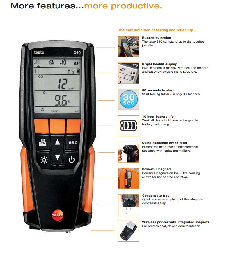 The testo 310 residential combustion analyzer represents a new class of instruments for Testo and provides exceptional value and expanded capabilities in
